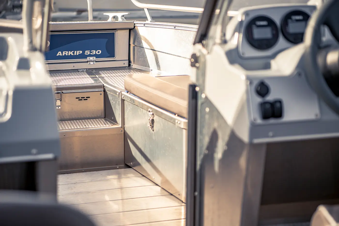 Arkip 530 BR on jo vakiona hyvin varusteltu. Siinä on esimerkiksi ovellinen kaksoispulpetti, kaasuvaimennetut flip up -mukavuusistuimet (korkeus- ja sivusäädettävät), kuomutalli kuomuineen, selkänojalliset takatyynyt, hydraulinen ohjauspyörä, 9 tuuman GPS/kaikuluotain (Garmin 922xs sis. DownVü-anturin ja anturikiinnikkeen), kiinteä säiliö (67 l), paikka irtosäiliöille, itsetyhjennys, automaattinen pilssipumppu, joustava pohjaratkaisu ts. irrotettavat säilytystilat perässä ja keulassa, integroitu porras, kulkemista helpottavat haineväkaiteet, reilut uimatasot integroiduin uimatikkain ja ankkurikotelot. Voidaan varustaa myös keulan istuintyynyillä, vesihiihto- kaarella ja kalastustasolla.